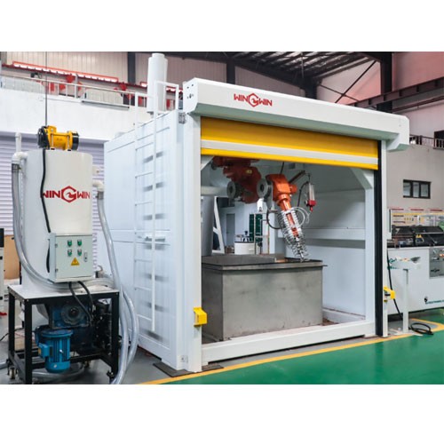 This set of robot waterjet machine is sold to America for helmet cutting.